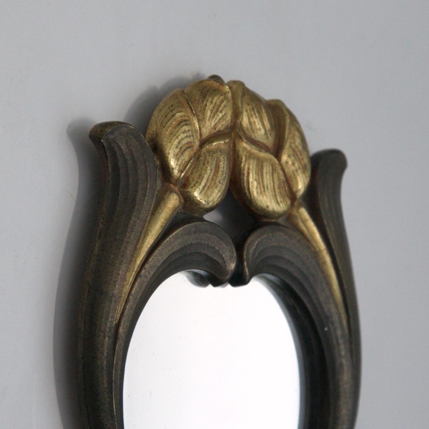 G. Autin Art Nouveau Bronze Mirror; France, c. 1930s