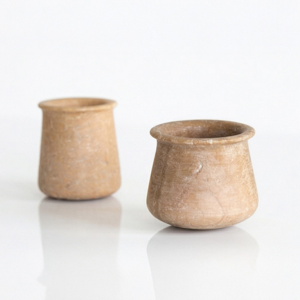 Vessel 1: 3"H x 2.25"DIA OPENING x 3.5"DIA BOTTOM Vessel 2: 3"H x 1.75"DIA OPENING x 2.75"DIA BOTTOM